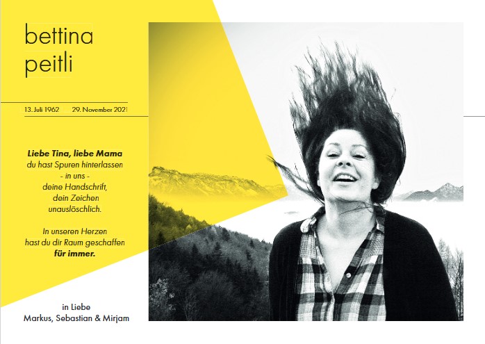 Unsagbar traurig müssen wir den Tod von unserer lieben Bettina „Tina“ Peitli zur Kenntnis nehmen.