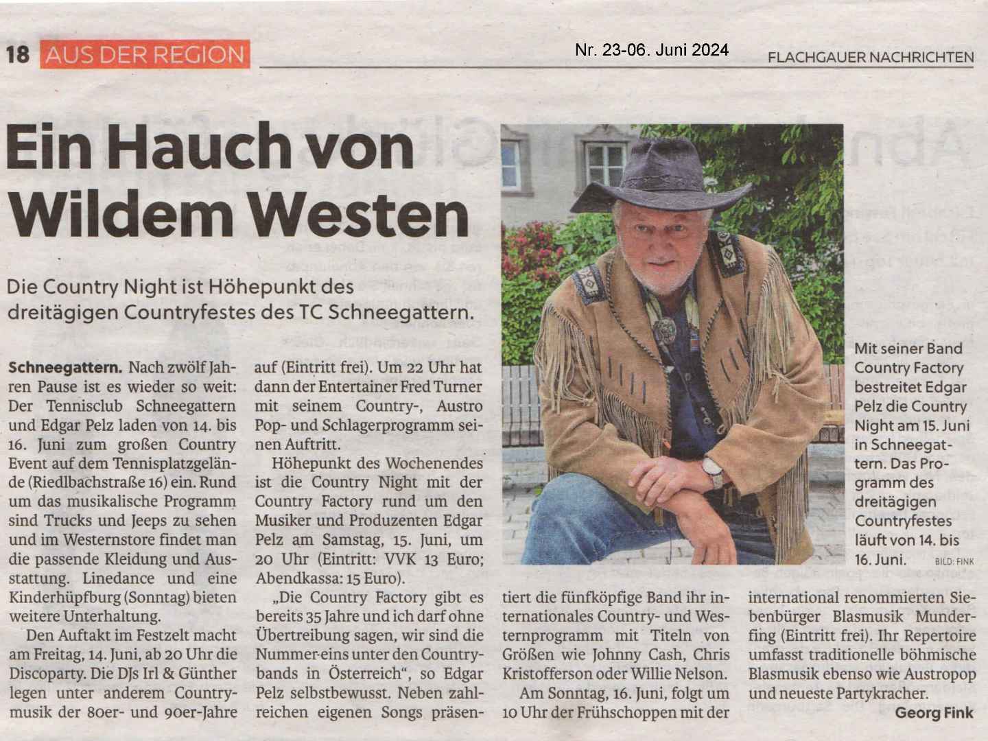 „Ein Hauch von Wildem Westen“, das berichten die Flachgauer Nachrichten in der Nr. 23-06. Juni 2024.